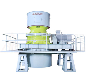 本設備廣泛應用于各種礦石的細碎和中碎,尤其適用于物料含水量不大于20%的磨料、石英砂、石灰石、河卵石、花崗巖、混凝土骨料、耐火材料、鋁釩土熟料、冶金礦渣、金剛砂等多種硬脆材料的中碎和細碎,是目前理想的一種高效、節能的制砂機。 XHL系列高效沖擊破采用瀑布流給料系統,以一定的控制量將第二個物料流引入破碎腔。增大破碎腔內的物料密集度,促進了顆粒間的能量交換。進入破碎腔的物料與懸浮物料及物料襯墊劇烈碰撞,并與從轉輪發射出的物料再次碰撞,失去能量的物料從破碎腔內排出。在破碎機運轉時,瀑布流給料系統能夠通過外部液壓裝置對瀑布流的大小進行調節,控制產品粒度組成。瀑布流調節系統可以通過液壓或手動靈活調節,這使破碎機能適應給料的變化,便于控制顆粒質量和細料含量。