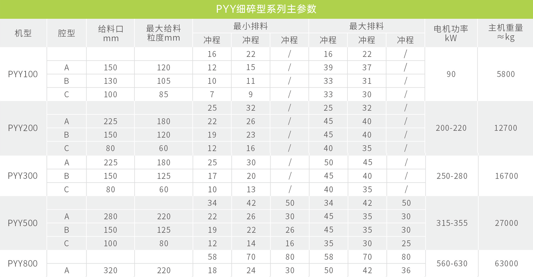 PYY系列單缸液壓圓錐破碎機適用于大、中型砂石、礦石加工企業,作礦石、巖石或巖基材料的二級、三級或四級破碎。適用范圍廣:可破碎較為堅硬的巖石,同一主機通過更換襯板即可取得多種腔型,從而適應各種應用場合。中碎型擁有穩定而較大的給料口,用于物料的二級破碎(甚至粗碎)。