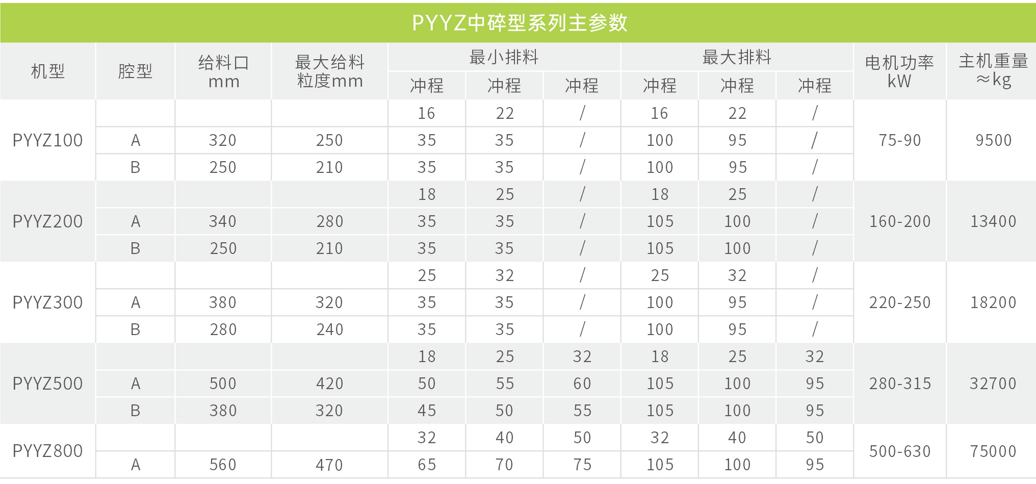可破碎較為堅硬的巖石,同一主機通過更換襯板即可取得多種腔型,從而適應各種應用場合。中碎型擁有穩定而較大的給料口,用于物料的二級破碎(甚至粗碎)。